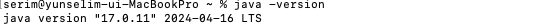 마지막으로 다시 java -version 을 통해 현재 버전이 정상적으로 변경되었는지 확인해주세요!